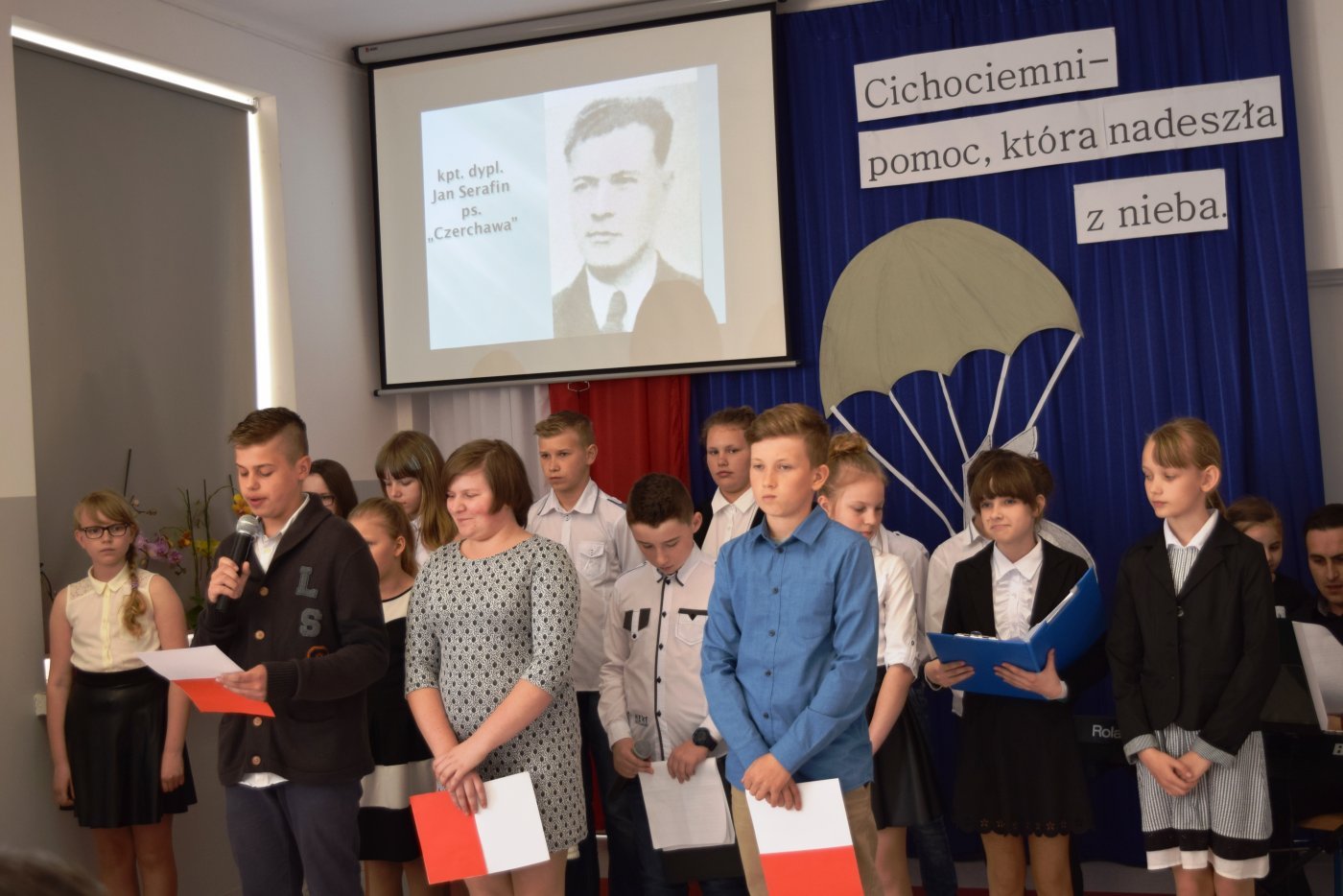 Z okazji 72. rocznicy operacji “Weller 18” uczniowie Szkoły Podstawowej w Opatkowicach przygotowali okolicznościową akademię, w której przedstawili rys historyczny oraz biogramy bohaterów akcji lotniczej. Dokładną biografię kpt. dypl. Jana Serafina ps. “Czerchawa” zaprezentował Pan Sławomir Snopek – znawca tematyki żołnierzy „Cichociemnych”.