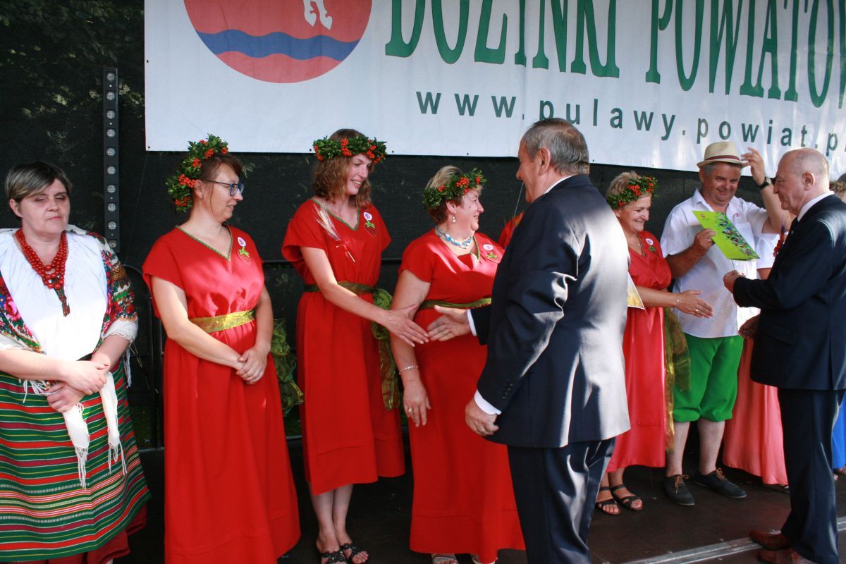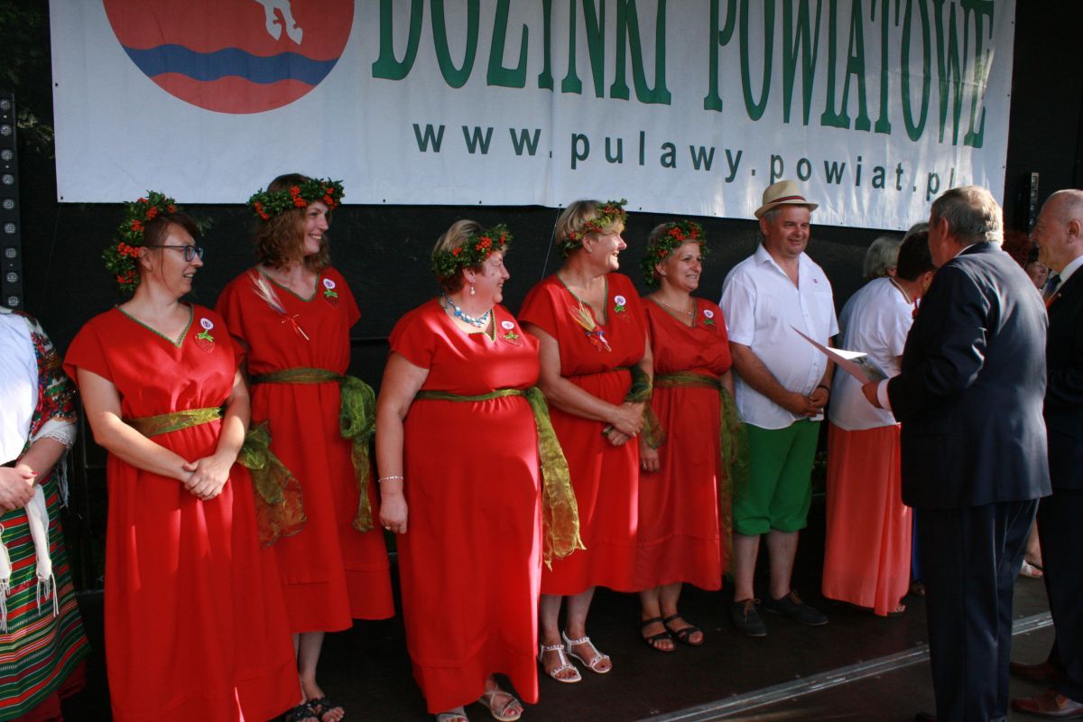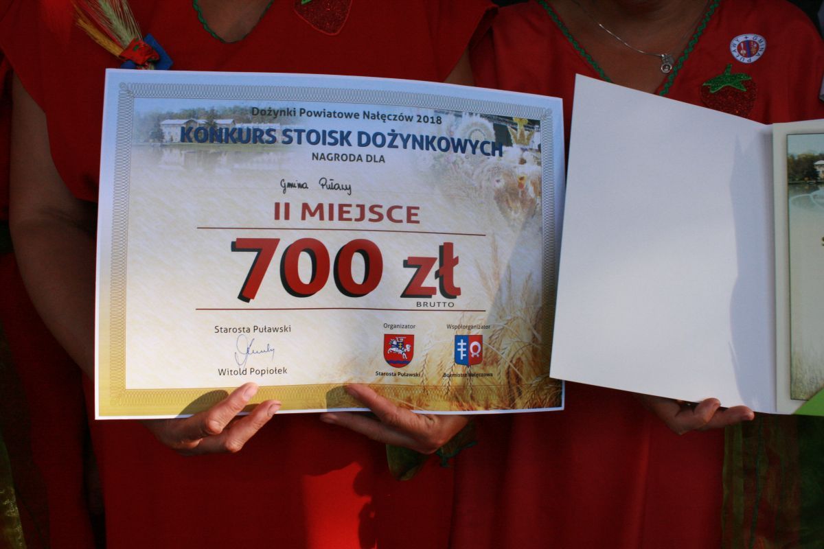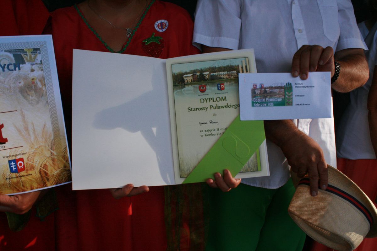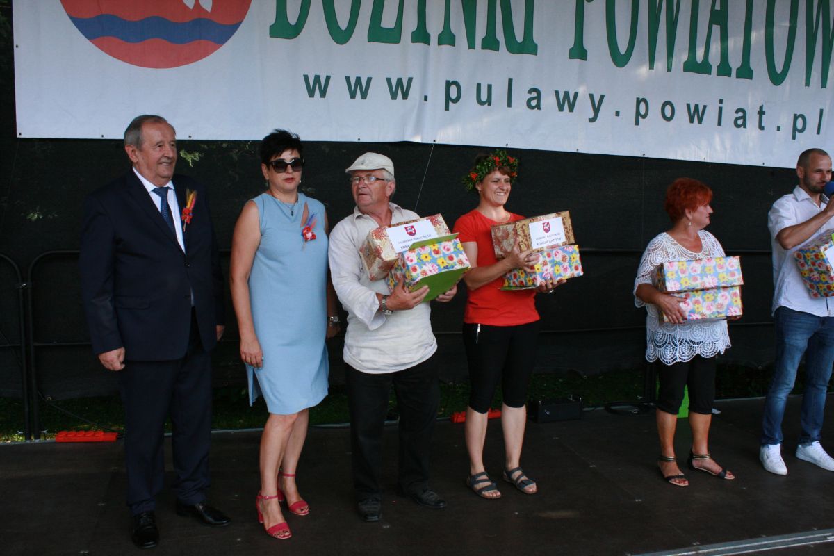 W niedzielę 12 sierpnia w Nałęczowie odbyły się Dożynki Powiatowe. Jak co roku w wydarzeniach wzięli udział przedstawiciele Gminy Puławy z Panem Wójtem Krzysztofem Brzezińskim na czele. Nasza gmina zajęła II miejsce w konkursie na najładniejsze stoisko, zaś w konkursie sołtysów nasi reprezentanci zajęli III miejsce oraz zostali ulubieńcami publiczności. Wśród laureatów z licznych konkursów znaleźli się również mieszkańcy naszej gminy. Pani Małgorzata Filipek i Grażyna Kowa zdobyły drugie miejsca w konkursach na najlepszy chleb, a Pani Teodora Dębska wyhaftowała „Uśmiech Papieża” na pierwsze miejsce. Gratulujemy laureatom i serdecznie dziękujemy wszystkim za wkład i przygotowanie Dożynek Powiatowych jak również odwiedzającym Nasze stoisko. Serdecznie dziękujemy i zapraszamy do obejrzenia fotorelacji.
