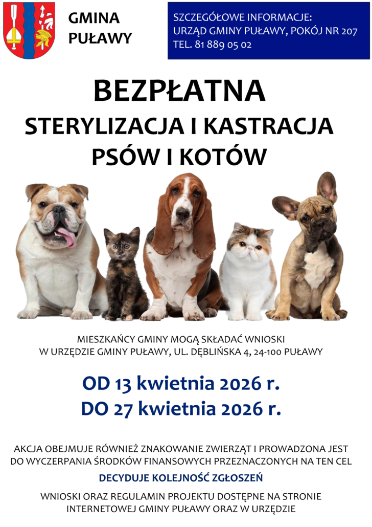 „Sterylizacja/kastracja wraz z elektronicznym znakowaniem psów i kotów należących do mieszkańców gminy Puławy w 2026 roku”